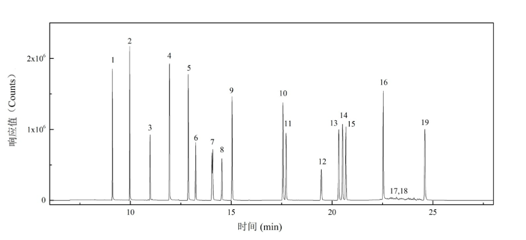 Standard Solutions:Using n-hexane as the solvent, nineteen phthalate ester (PAEs) standard stock solutions were serially diluted to prepare calibration standards at concentrations of 0.05 μg/mL, 0.1 μg/mL, 0.2 μg/mL, 0.5 μg/mL, 1 μg/mL, 2 μg/mL, 5 μg/mL, 10 μg/mL, and 20 μg/mL.