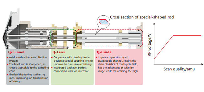 ● Q-guide, improved quadrupole transmission channel to ensure all ions efficient transmission.